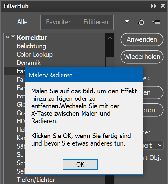 2. Der Filterdialog erscheint, wo Sie die Einstellungen des Filters bearbeiten können. Drücken Sie auf OK.