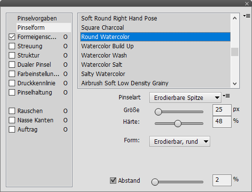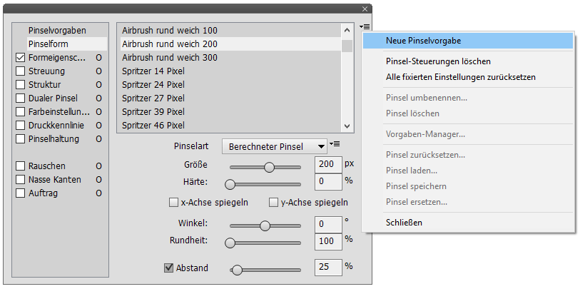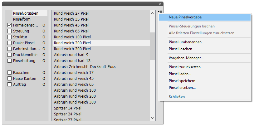 Der oberste Eintrag "Pinselvorgaben"