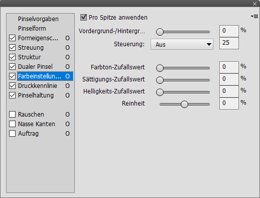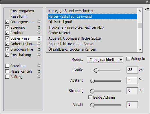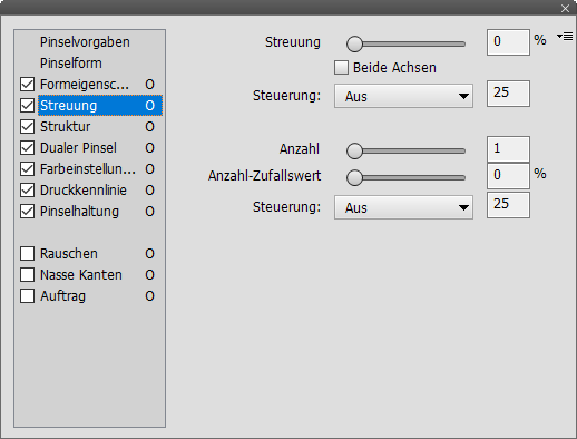 wird. Die Einstellungen hier sind ähnlich wie unter Pinselform und Streuung.