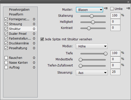 Die Struktur-Einstellungen wenden eine Struktur bzw. Textur auf die Pinselspitze
