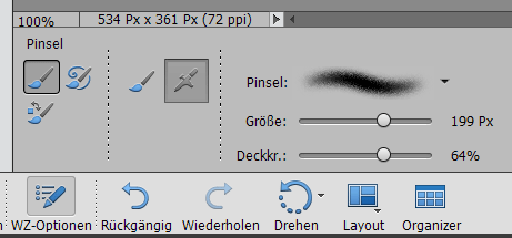 Bitte beachten Sie: ElementsXXL kann nicht zu jeder Zeit auf alle Pinseleinstellungen zugreifen, was den Einschränkungen der Plugin-Schnittstelle von Photoshop Elements geschuldet ist. Somit verwenden Sie bitte während einer Photoshop-Elements-Sitzung entweder nur den Pinsel- und Tableteinstellungen-Dialogen des WZ-Optionen-Fensters oder verwenden Sie nur das Pinsel-Bedienfeld von ElementsXXL, da Anpassungen in den Pinsel- und Tableteinstellungen-Dialogen durch eine neue Änderung im Pinsel-Bedienfeld rückgängig gemacht werden.