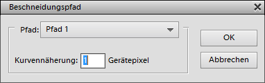 Im Beschneidungspfad-Dialog kann man den Pfad auswählen, der als Beschneidungspfad dienen soll, sowie die Kurvennäherung (d.h. Weichheit) der Pfadkurven.