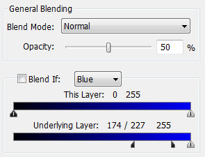 The clouds from the bottom left image were blended with the top left image using the Blend If settings in the bottom right screenshot. The top right image shows the result. Manually masking all of the fine branches would have taken 1-2 hours whereas LayerShop's Blend If feature made it possible in less than a minute. (Photos: Harald Heim)