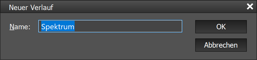 Die Schaltfläche Neu fügt einen aktuellen Verlauf als neuen Verlauf hinzu. Wenn Sie darauf klicken, erscheint ein neuer Dialog, wo Sie den Namen des neuen Verlauf eingeben können. Nachdem Sie auf OK geklickt haben, erscheint der neue Verlauf in der Liste oben.