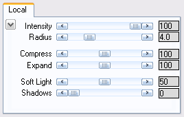 The Local tab sheet controls the local contrast effect. The local contrast effect often appears less strong than the dynamic and adaptive contrast effects, but it can effectively emphasize edges and compress the contrast range to enrich the mid tones.