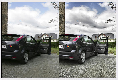 The Right View displays the effect on the right side of the preview and the Left View displays it on the left side. The Bottom View displays the effect at the bottom of the preview and the Top View displays it on the top. Same with the other two options. To move the separation line between the two versions, you need to activate the split view icon at the top right corner of the preview. The you can use the split view tool to drag the separation line.