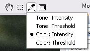 The eyedropper tool features four modes: Tone: Intensity, Tone: Threshold, Color: Intensity and Color : Threshold. For example, the "Tone: Intensity" mode lets you change one of the Intensity slider from the Shadows, Midtones or Highlights group of the Tone tab sheet when clicking and dragging over the preview. The "Color: Threshold" mode on the other hand targets one of the Threshold sliders of the Color tab sheet in case you click on a colored area. If you clicked on a gray colored area, the same mode adjusts the Threshold slider of the Graytones group of the Tone tab sheet.
