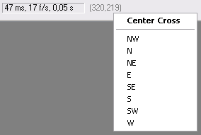 Some effects allow you influence the effect with a preview cross by right clicking (Windows) or by holding the Ctrl key and clicking (Mac) on the preview. The coordinates of the preview cross are displayed as pixel values at the right of the progress bar below the preview. If the values are red, it means that the preview cross is invisible because it lies outside the actual image. If you right click (Windows) or hold down the Ctrl key and click (Mac) on the coordinate label, a context menu for centering the preview cross in the center or at the borders of the image will appear.