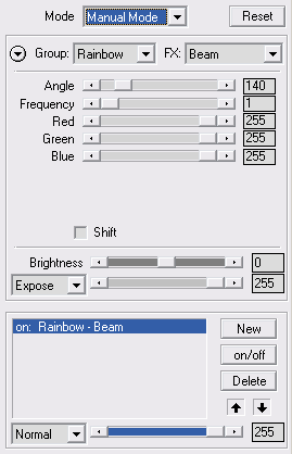 If you select a item in the layer list, the settings of the selected layer will appear on the Effect tab sheet. That way you can switch between various layers and edit them separately. You can also select another layer with the cursor keys. To add a new layer you need to use the New button. The new layer will appear above the selected layer and will be identical with the selected layer. But you can change that on the Effect tab sheet.