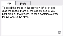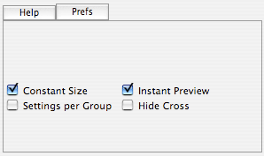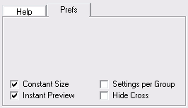 The Prefs tab sheets offers various check boxes. The Constant Size check box is activated by default and should be kept activated. If it deactivated, the many Plugin Galaxy effects will be image size dependent and look different on images of different size. Only deactivate it if you want to reproduce an effect from a earlier version of Plugin Galaxy.